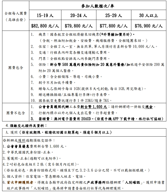 115年度第2次國外旅遊活動【澳洲東岸雙城-布里斯本.雪梨8天】