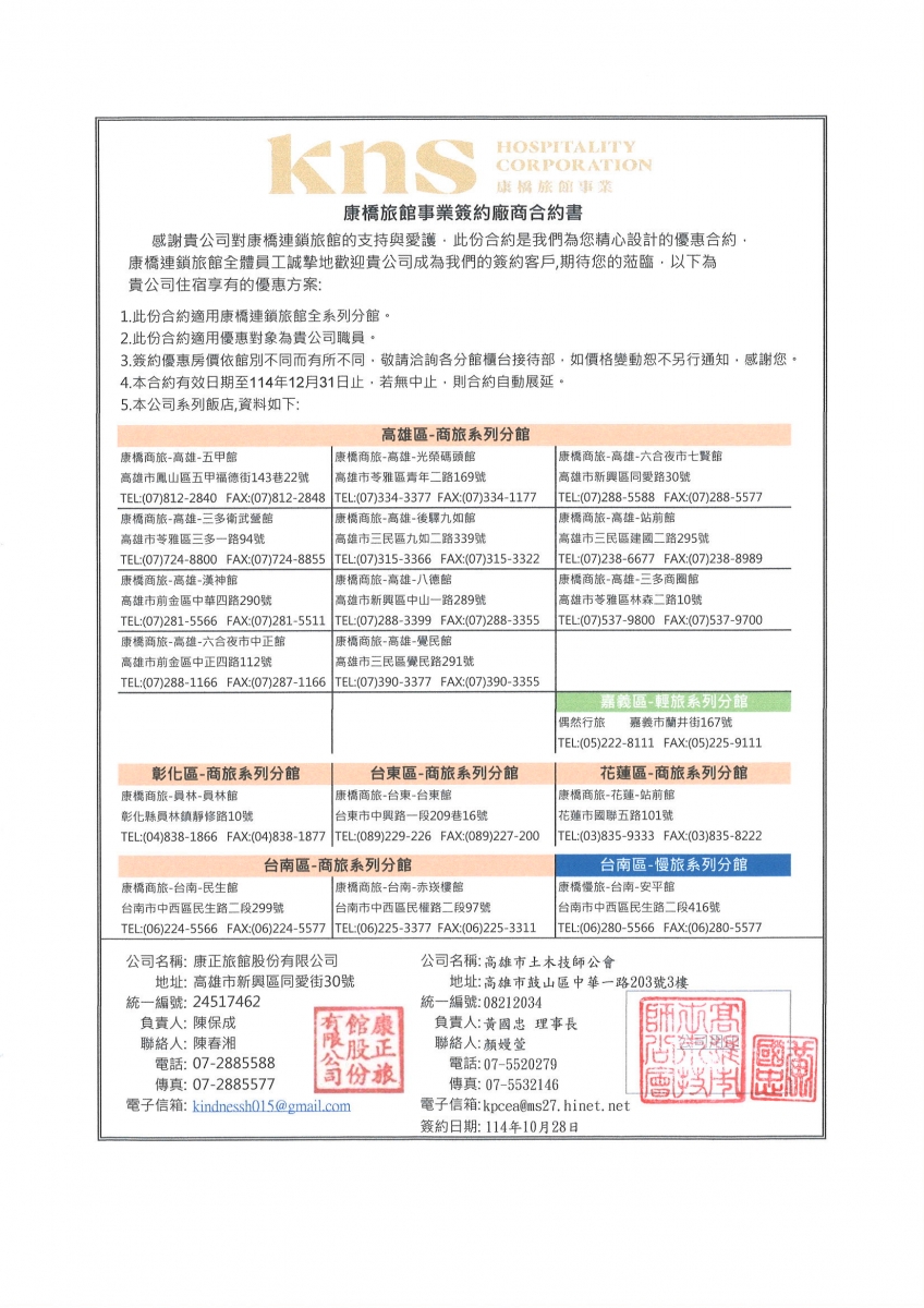 康橋旅館X高雄市土木技師公會專屬特約禮遇