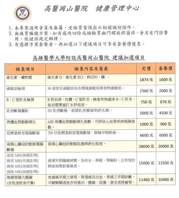高雄醫學大學附設高醫岡山醫院X高雄市土木技師公會專屬特約禮遇