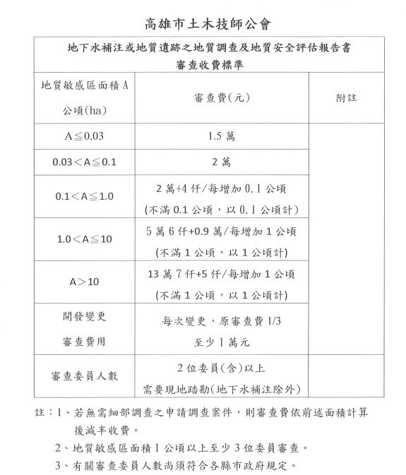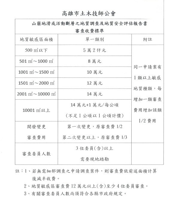 地質敏感區基地地質調查及地質安全評估報告書審查收費標準