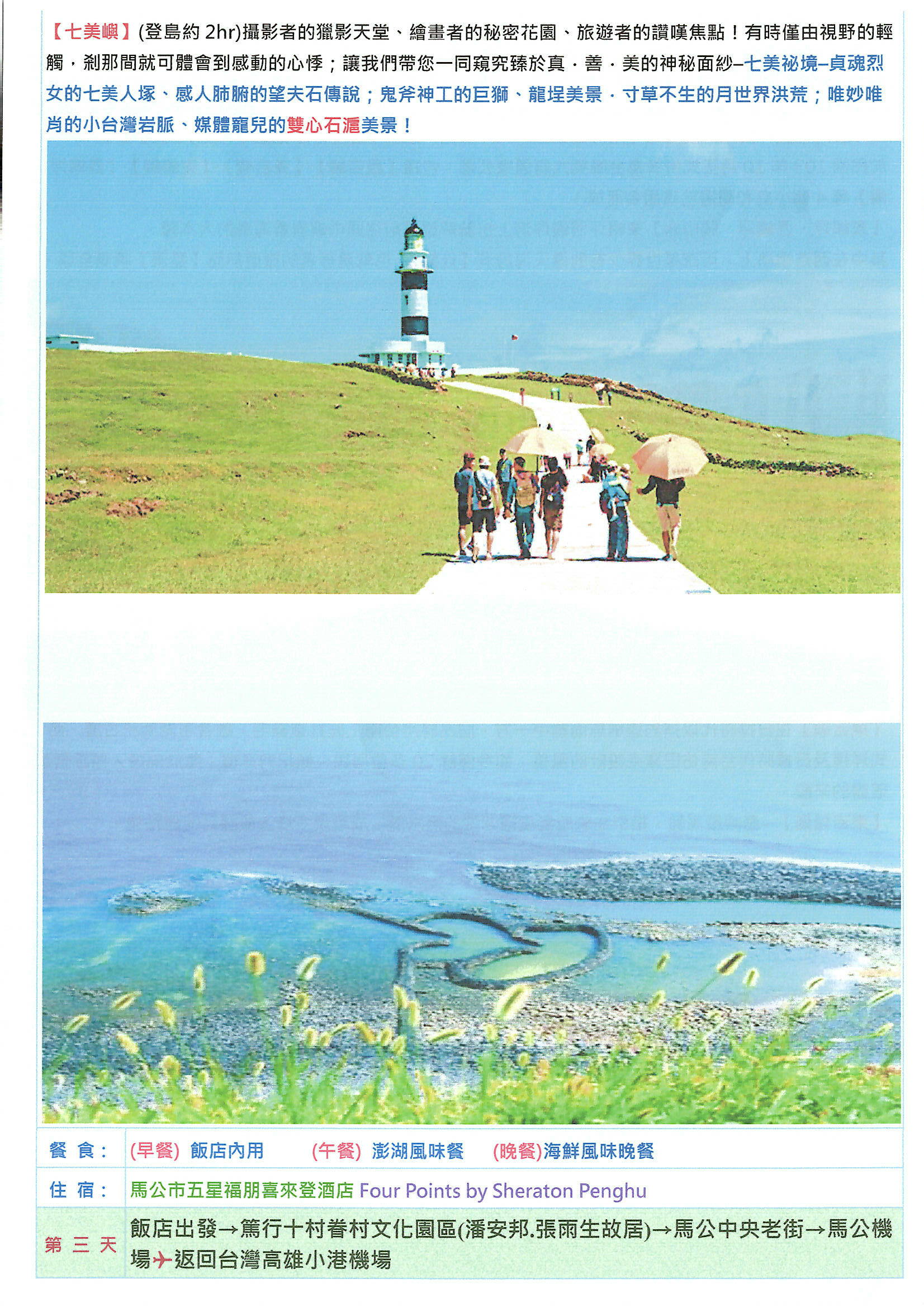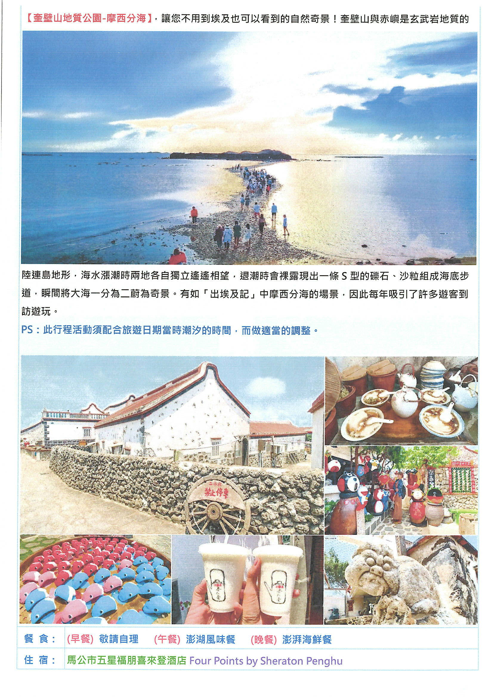 花火節盛大開幕~澎湖之美~南方四島.藍洞巡航.摩西分海 七美雙星石滬.海鮮饗宴.奢華品牌.國際五星喜來登三日