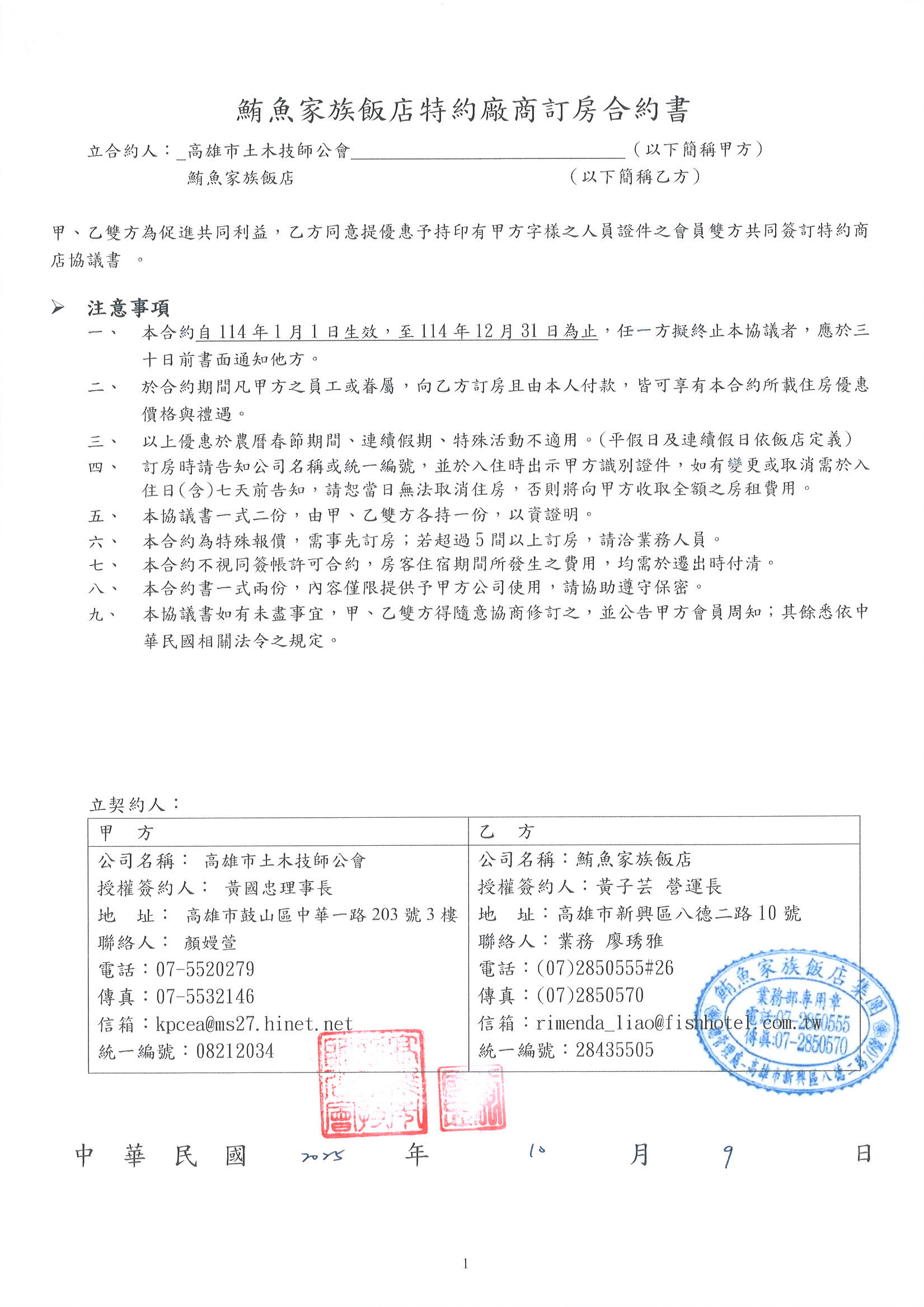 鮪魚家族飯店X高雄市土木技師公會專屬特約禮遇