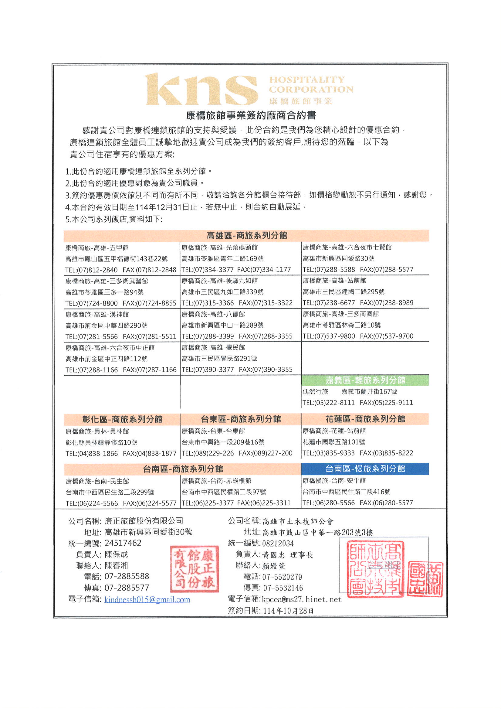 康橋旅館X高雄市土木技師公會專屬特約禮遇