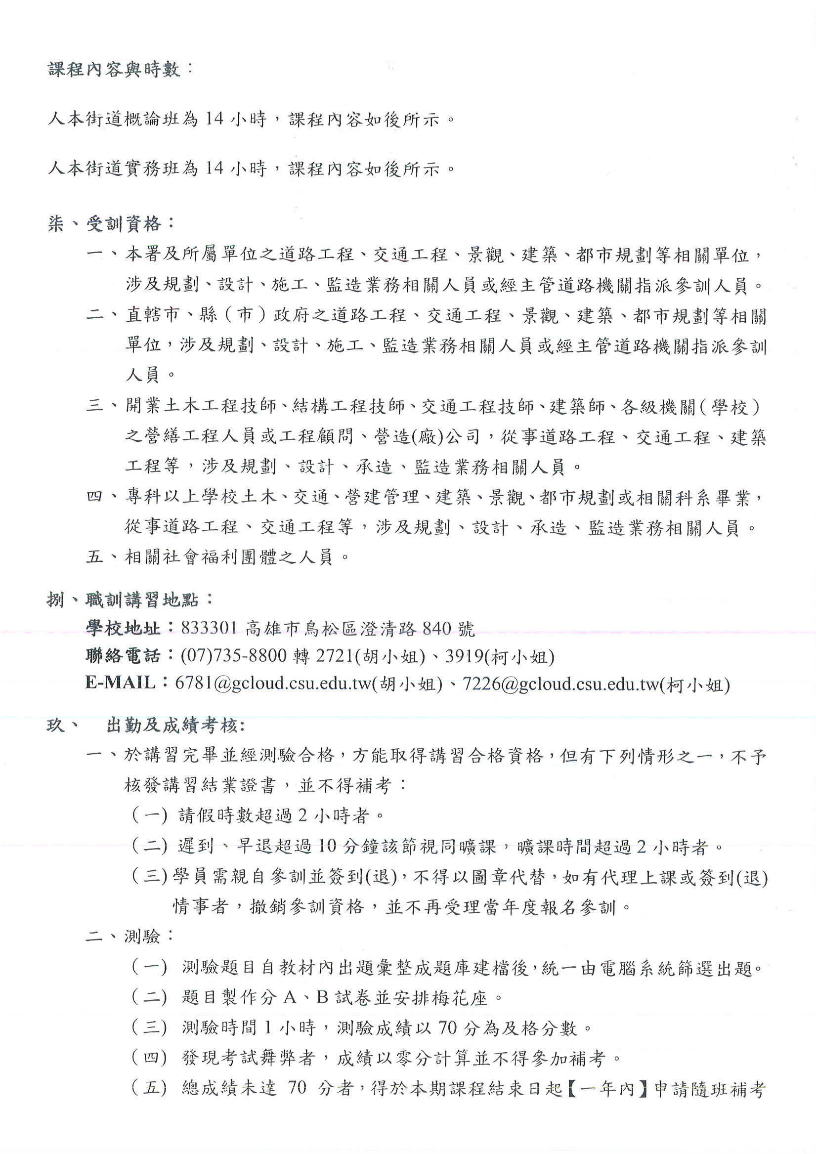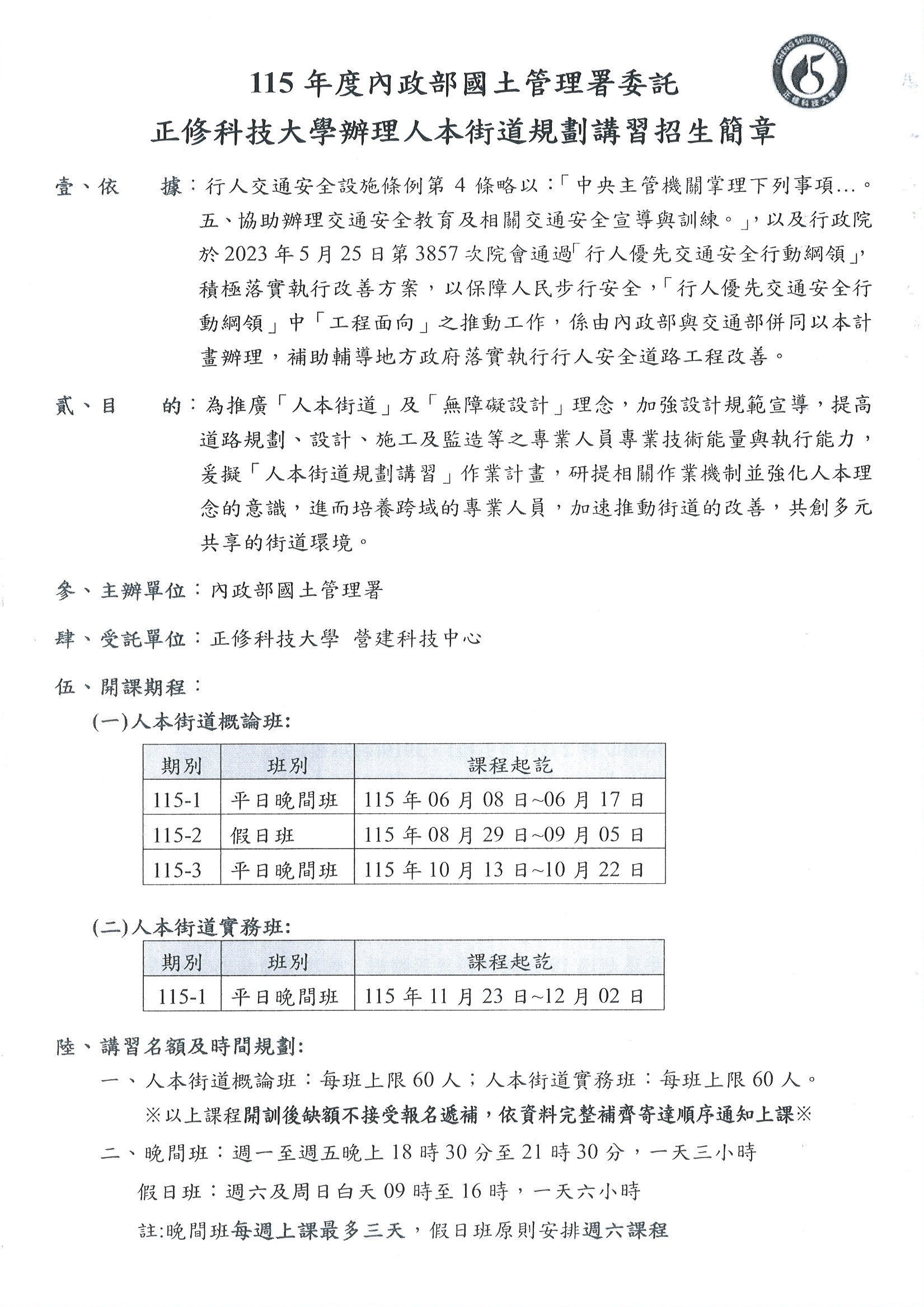 內政部國土管理署委託辦理115年度「人本街道規劃講習」課程,歡迎貴單位派員參訓